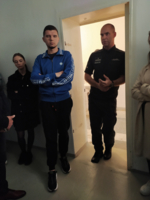 Po tej wstępnej prezentacji, dzięki uprzejmości kierownictwa Aresztu, zostali oprowadzeni po budynku penitencjarnym oraz zapoznani z zasadami funkcjonowania jednostki. Podczas wizyty, która przebiegała w bardzo życzliwej atmosferze, doświadczeni funkcjonariusze odpowiadali na liczne pytania związane z specyfiką tej służby, często wykorzystując w tym celu przykłady z życia wzięte.