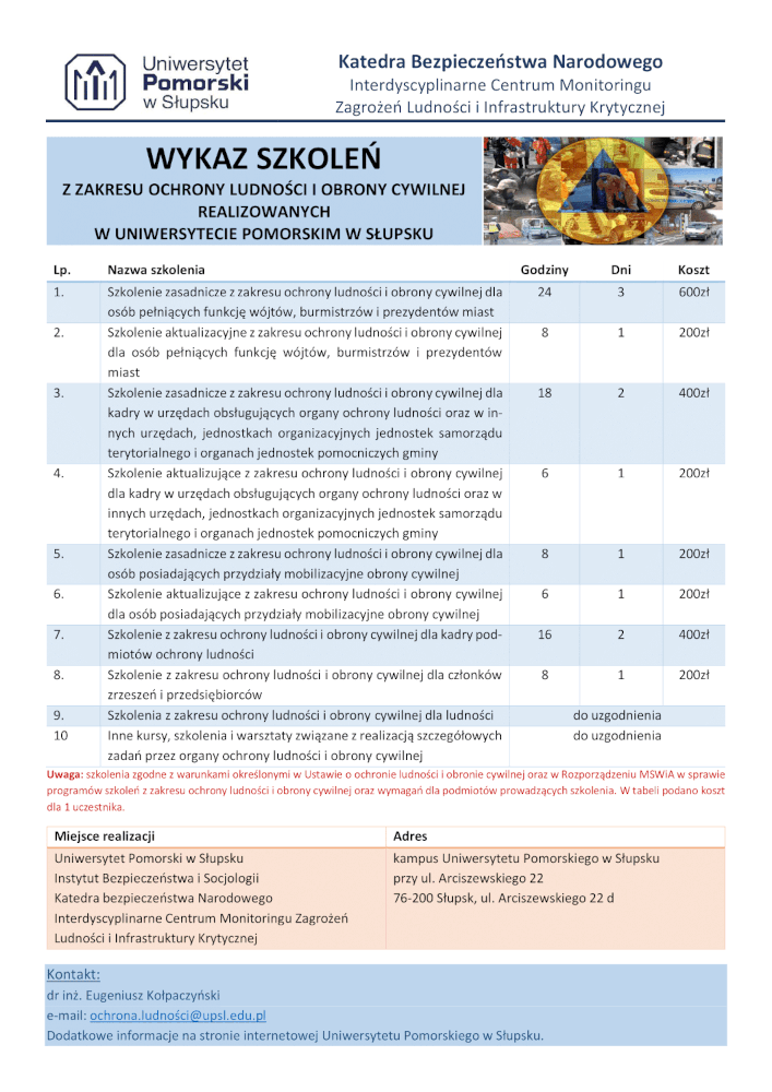 Uniwersytet Pomorski w Słupsku - Wykaz kursów i szkoleń